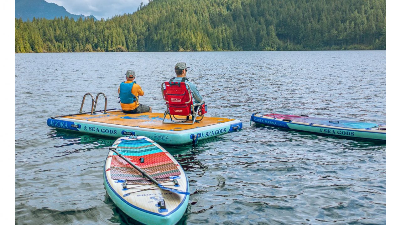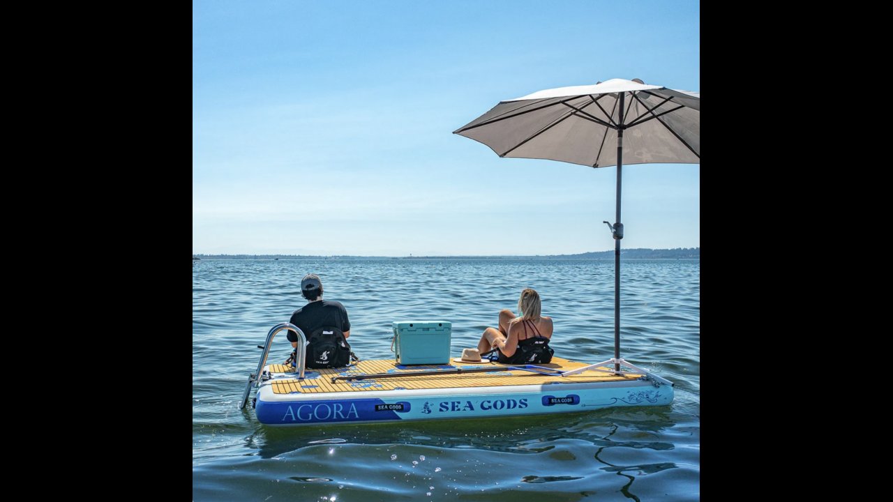 Discover the serenity of Manitoba's breathtaking lakes with your vey own inflatable dock- a perfect way to unwind on the water.
